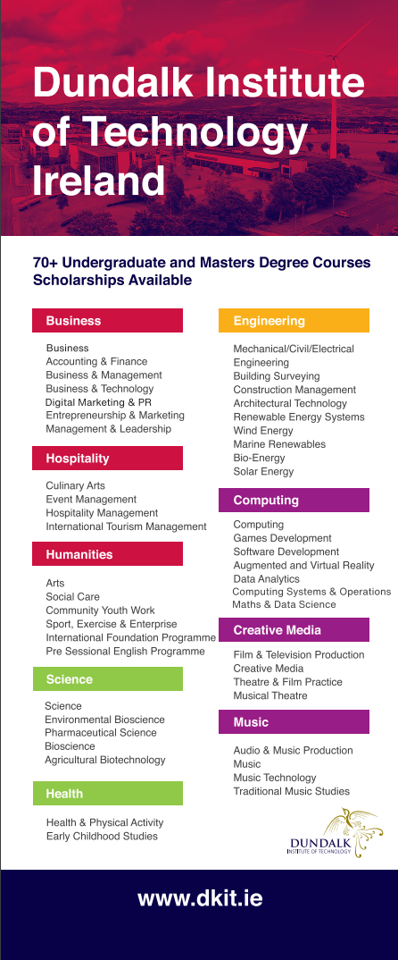 • DKIT campus se localiza a 20 minutos caminando del centro de Dundalk y a menos de 45 minutos de la Aeropuerto Internacional de Dublín