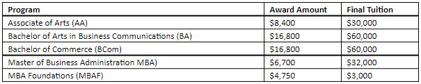 Program | Award Amount | Final Tuition |